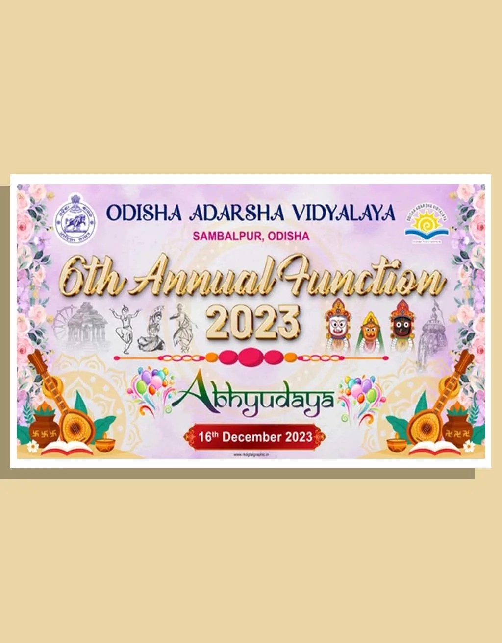 Introducing the 6th Annual Function Banner PSD Template (15×8 Feet) for Odisha Adarsha Vidyalaya, Sambalpur – a beautifully handcrafted Photoshop design perfect for school functions, cultural days, or academic celebrations.